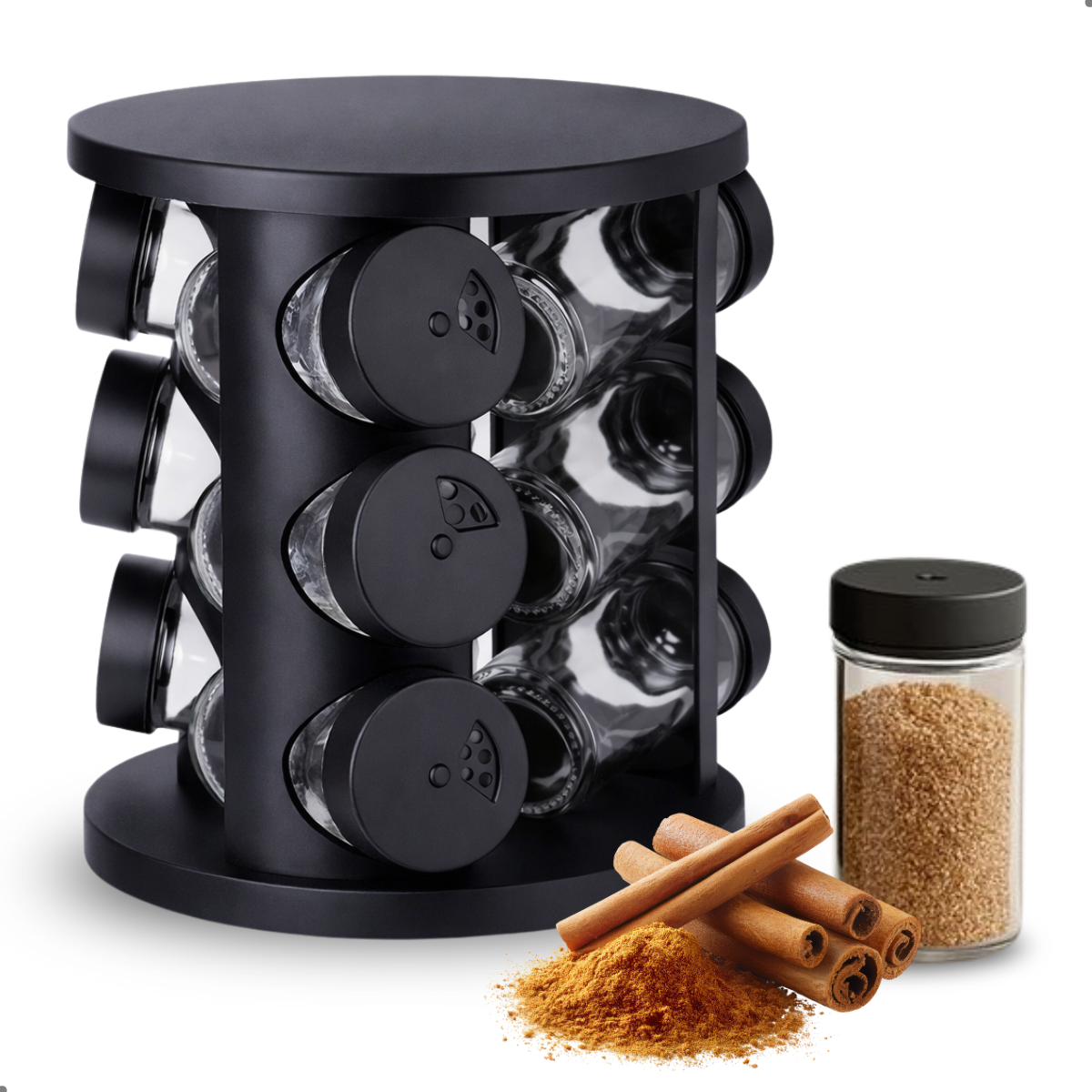 1 Suporte giratório com 9 potes de vidro para temperos.